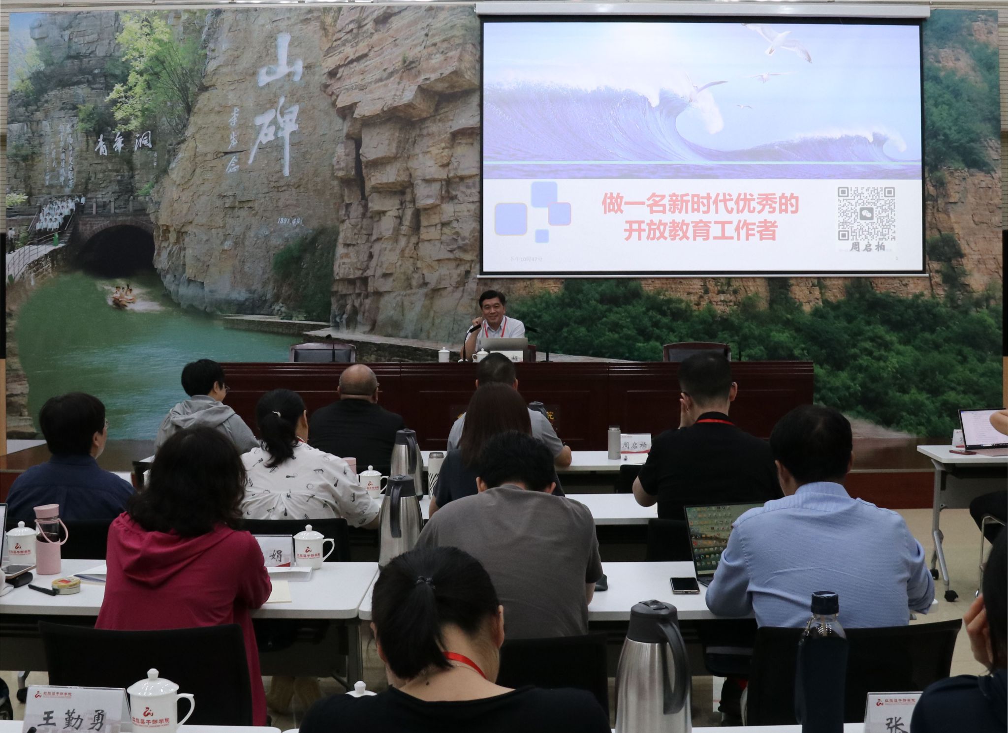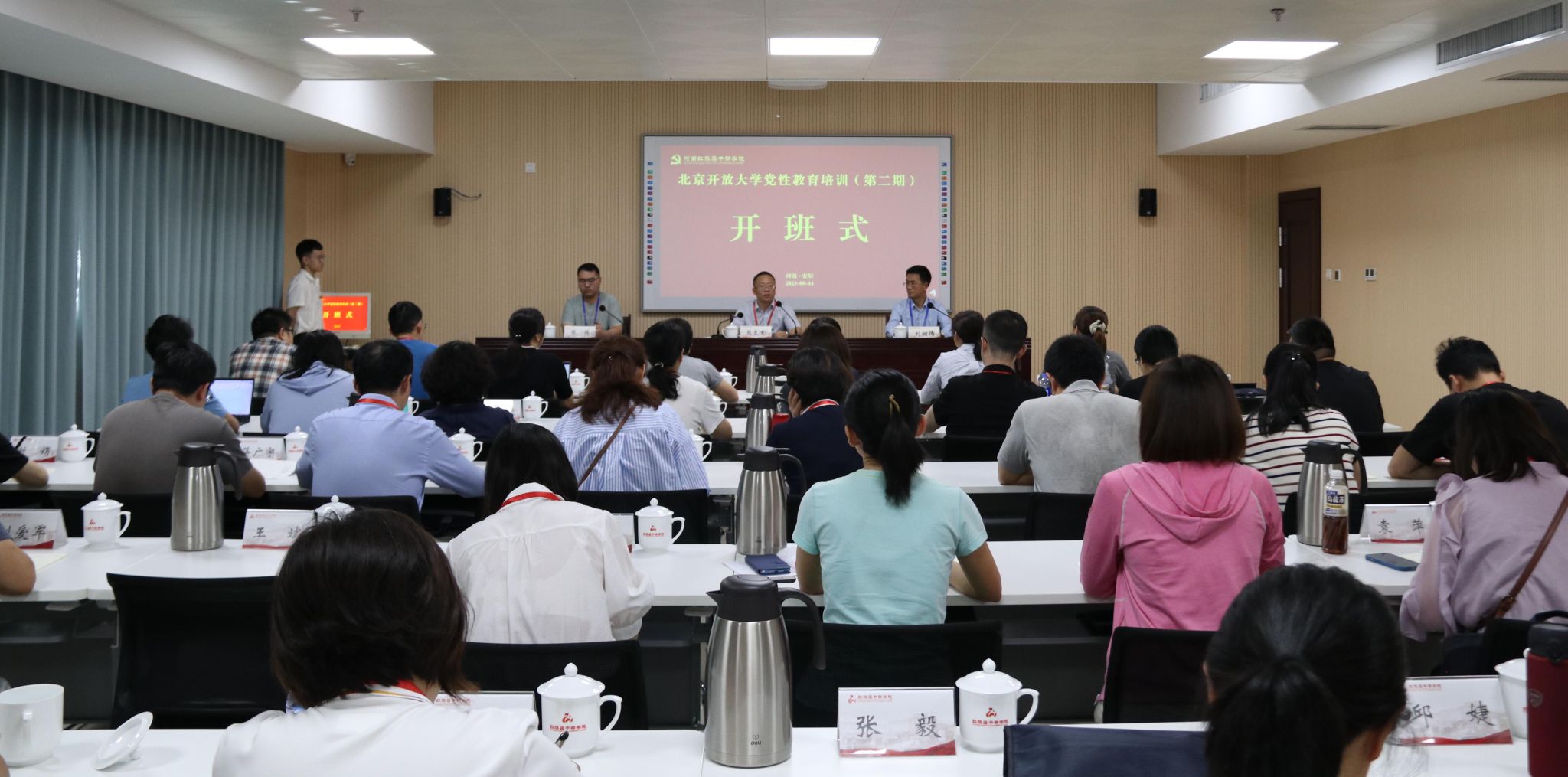 开班式上,红旗渠干部学院副院长刘星营致欢迎词并为培训班授旗。