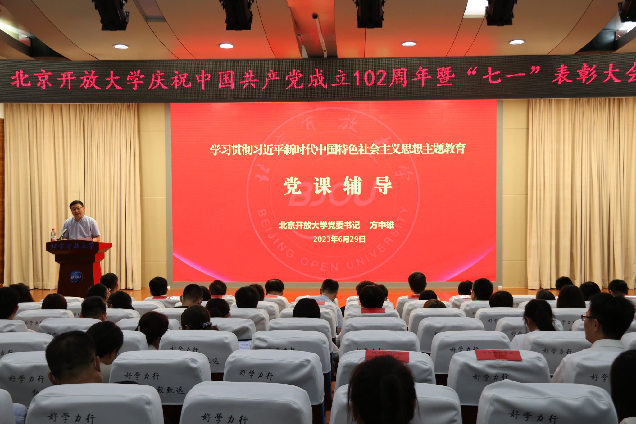围绕主题教育有关要求,方中雄为全体党员作专题党课辅导。党课以学习贯彻习近平新时代中国特色社会主义思想为主线,结合学校的发展形势,从坚持以学铸魂,系统学习习近平新时代中国特色社会主义思想;坚持以学增智,从党的创新理论中汲取智慧力量;坚持以学正风,以自我革命精神加强作风建设;坚持以学促干,推动高质量发展取得新成效等四个方面进行教育引导。围绕“十个明确”理论总结、“十四个坚持”基本方略、“十三个方面成就”实践总结,系统重温了习近平新时代中国特色社会主义思想的主要内容和精髓要义。围绕“六个必须坚持”等立场观点方法,强调要坚持人民至上,贯彻“以学生为中心”工作理念,解决“为谁发展”的问题,贯彻“以教师为中心”工作理念,解决“靠谁发展”的问题,扭住高质量发展中心工作,解决“怎样发展”的问题,将三个“中心”统一于开放教育具体实践,不断满足市民终身学习需求。要坚持自信自立,深入领会党和国家对教育事业的战略部署,充分认清学历教育、社区教育、老年教育、职业培训、家庭教育等对经济社会的重要意义,坚定投身开放教育的信念信心、责任感和使命感,努力提升开放教育社会影响力。要坚持守正创新,贯彻新发展理念和稳中求进工作总基调,总结和坚守过去的有益探索、实践经验、建设成果,确立高质量发展办学方略,不断创新人才培养模式,完善首都终身学习服务体系,加大开放力度,实现又好又快发展。要坚持问题导向,聚焦学校事业发展和党的建设重大问题,聚焦事关全局和长远发展的关键问题,聚焦新发展阶段遇到的新问题,聚焦改革发展稳定存在的深层次问题等,不断提出真正解决问题、化解矛盾的新理念、新思路和新办法,突出办学优势与亮点,规避办学风险与管理盲区,培育和做大新的增长点。要坚持系统观念,牢固树立“一盘棋”思想,处理好办学治校各个领域、各项工作之间的一系列关系,加强前瞻性思考、全局性谋划、整体性推进,以系统观念打造开放融通的教育生态圈,实现开放大学的不可替代性。要坚持胸怀天下,依托对外交流、京津冀教育协同发展、合作办学等协作机制,与国内外开放大学、教育机构开展跨地区交流合作,不断增强教职工对发展中的开放教育的全面认识和适应能力。